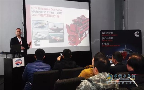 在隨后舉行QSK95介紹會環節,來自康明斯的技術專家為大家進行了詳細的講解,獲得到場觀眾和客戶的一致好評。讓來賓更全面的了解了這款康明斯旗下的明星產品,對QSK95在船機及其他市場的應用充滿信心。