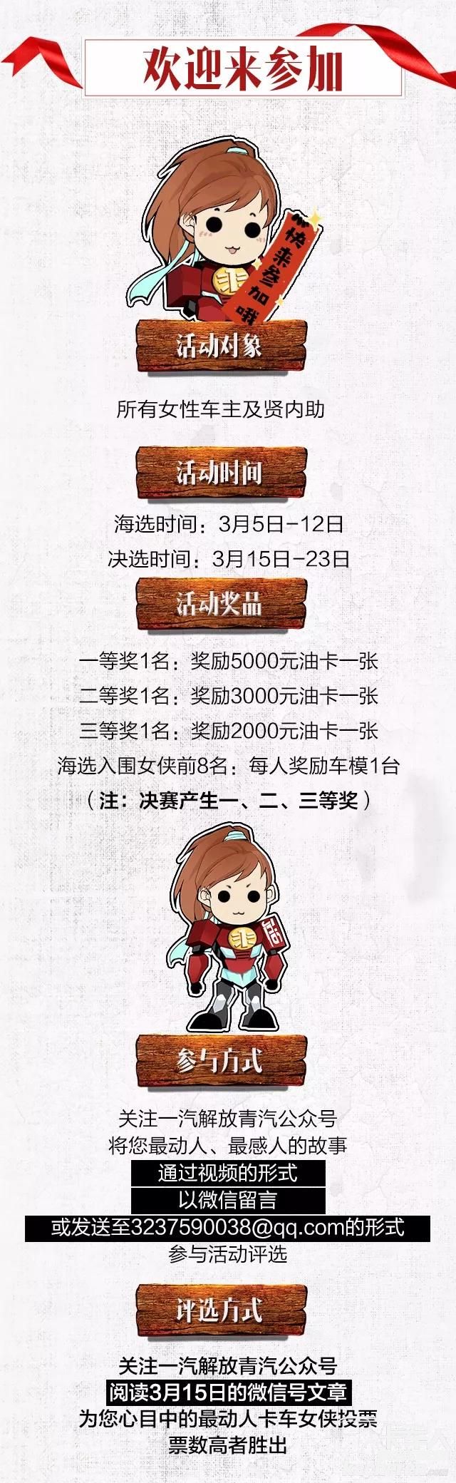 三八女神節將至,在這個特別的時間,一汽解放青汽推出了特別企劃,尋找中國最動人卡車女俠,用實際行動為卡車女俠們送上祝福,參與活動更有機會贏萬元大獎哦!