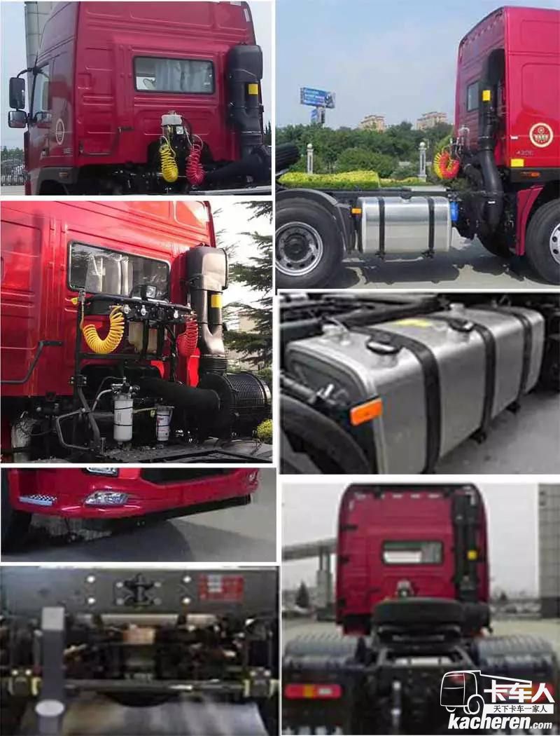 前軸裝備盤式制動(dòng)器,裝備限速裝置,限速80km/h.選裝導(dǎo)流罩,平頂駕駛室, 整備質(zhì)量9460 kg,準(zhǔn)拖掛車總質(zhì)量為39410 kg。