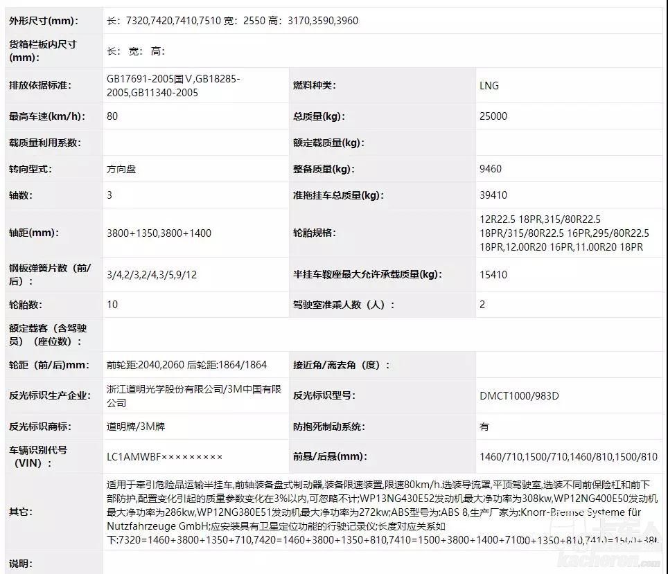 準(zhǔn)拖掛車總質(zhì)量均為40000kg。整備質(zhì)量(KG)8000\8795。當(dāng)整備質(zhì)量為8000kg時(shí),半掛車鞍座最大允許載質(zhì)量為16870kg(2人)/16805kg(3人);當(dāng)整備質(zhì)量為8795kg時(shí),半掛車鞍座最大允許載質(zhì)量為16075kg(3人)/16010kg(2人)。