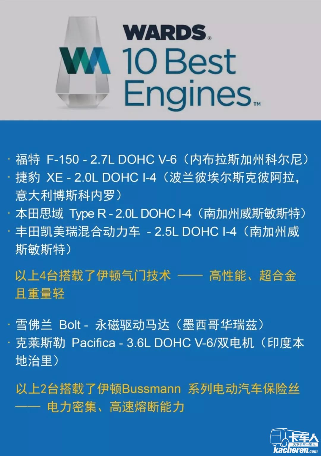 要論世界上最有代表性的發動機評選活動,唯有“沃德全球十佳汽車發動機”一直以來倍受關注,甚至廣大消費群體視他世界發動機技術的風向標。在2018年的評選中,竟有6臺獲獎發動機使用了伊頓技術!