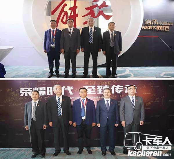 合肥:一汽集團總經理助理兼解放公司董事長胡漢杰先生、解放公司營銷總部部長,解放銷售公司總經理王志才先生,與解放大客戶合影留念