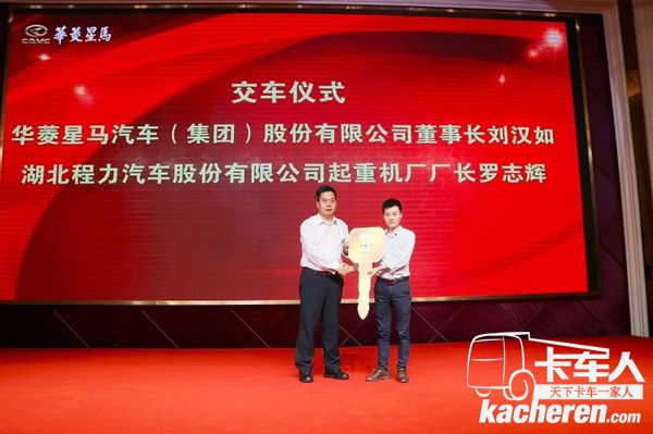 有賴于專用車底盤及隨車吊產品的突出優勢,活動現場華菱星馬專用車產品成功獲單198臺,集團公司董事長劉漢如先生親自上臺為客戶交付象征車輛的金鑰匙。