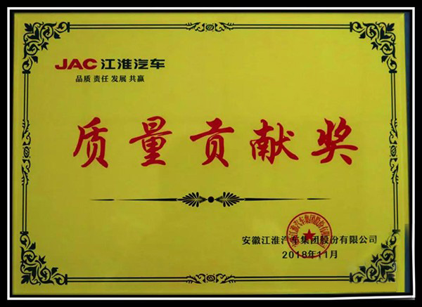 美馳車橋榮獲江淮集團2018年度質量貢獻獎