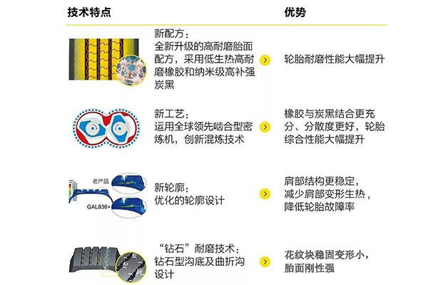 特別為長途貨運市場、半掛牽引車輛量身打造的GAL836+輪胎產品于不久前在中國正式上市,其適用于全輪位,并在產品設計、制造工藝方面均有創新升級。