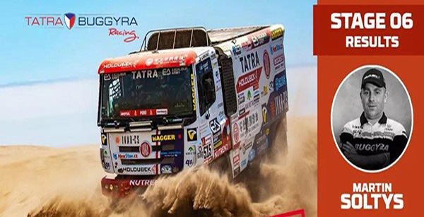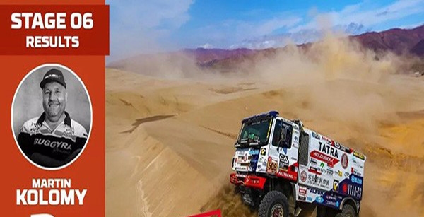 秘魯當地時間2019年1月13日,達喀爾拉力賽第六賽段結束(SS6:阿雷基帕-馬科納),全賽段共810公里。本賽段卡車組共30輛賽車參賽,截止目前有15輛賽車到達終點,零公里潤滑油-Buggyra車隊車手Soltys排名第7,另一位車手Kolomy排名第2。憑借頑強堅韌的精神,兩位車手堅守著理想與信念,沖破了每一次未知的挑戰,向永不止步的探險精神致敬!