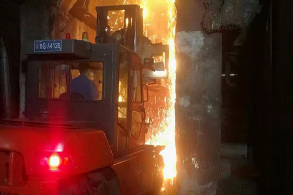 鑄鍛公司熔煉二車間的沖天爐每天供應鐵水數百噸,每個月維修小組都要對沖天爐進行檢修。爐內溫度達60℃,為不影響高產,他們連續奮戰2天,最快速度完成任務。