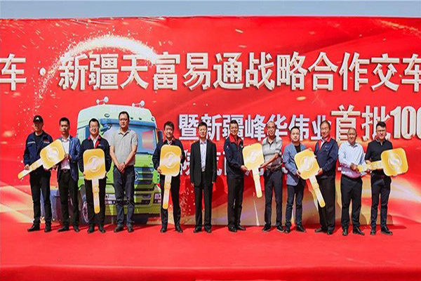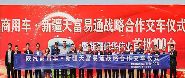 “我們的目標絕不僅是這100臺車,后續(xù)我們和陜汽商用車、新疆峰華偉業(yè)汽車貿(mào)易有限責任公司還將有更親密的合作。”新疆天富易通供應(yīng)鏈管理有限責任公司負責人在交車儀式現(xiàn)場說道。