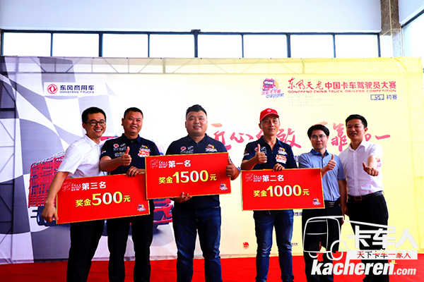 好在功夫不負(fù)有心人,截止下午比賽結(jié)束時(shí),賽場傳來捷報(bào):老司機(jī)丁盛、符長扣、丁金忠分別以精湛的車技拿下本次比賽的冠軍、亞軍和季軍,分別獲得1500元、1000元、500元現(xiàn)金獎(jiǎng)勵(lì),并拿到直通半決賽的門票。對于手中這個(gè)新鮮的比賽拍檔,冠軍丁盛表示:“東風(fēng)天龍KL剛上市,我們就開上了,還是很幸運(yùn)的,就舒適性與穩(wěn)定性來說,這次的新品表現(xiàn)確實(shí)很優(yōu)秀,轉(zhuǎn)向輕盈、動(dòng)力充沛、操控性好、皮實(shí)耐用,四點(diǎn)懸浮駕駛室使整車駕馭舒適。今天能拿到冠軍,心情很激動(dòng),同時(shí)也證明了我自己的實(shí)力,謝謝東風(fēng)商用車團(tuán)隊(duì)吧”。