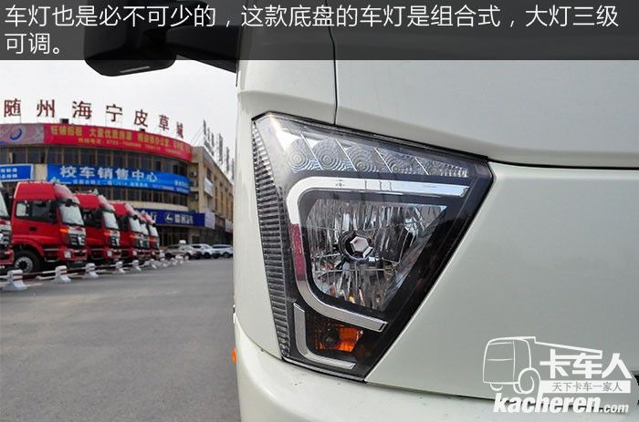 車燈也是必不可少的,這款底盤的車燈是組合式,大燈三級可調,可以規避因為貨物裝載重量不同導致照明上下跳動的偏差,行車更加安全。