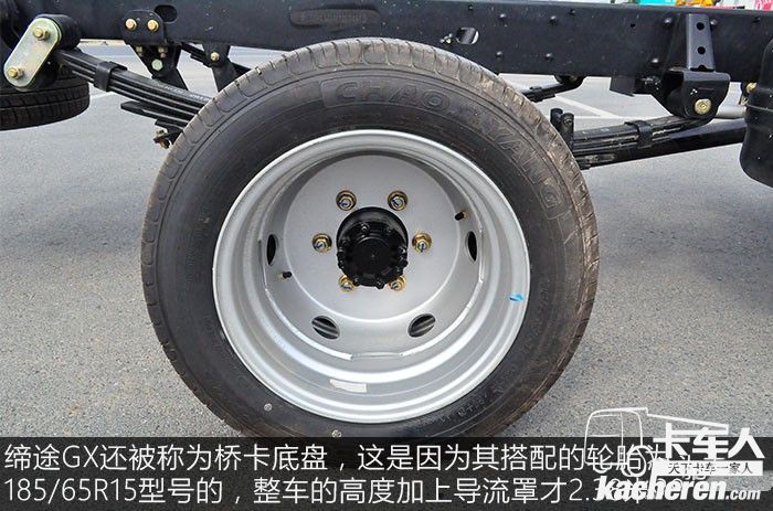 締途GX還被稱為橋卡底盤,這是因為其搭配的輪胎為185/65R15型號的,整車的高度加上導流罩才2.38米,這樣對于限高路段和地下室等地方就可輕松駛過,跟越野車有的一拼。