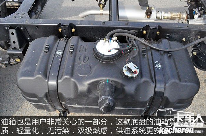 油箱也是用戶非常關心的一部分,這款底盤的油箱是塑料材質,輕量化,無污染,雙級燃慮,供油系統更安全。