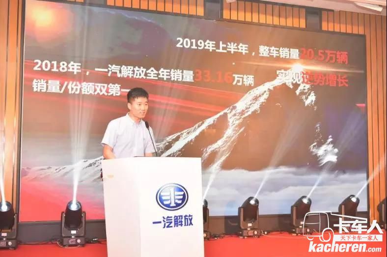 會上,一汽解放汽車銷售有限公司粵海商代處銷售經理楊碩表示:“用銷量說話,為品質代言。上半年,解放共實現整車銷售20.5萬輛。上半年優異成績的取得,為解放年終目標的實現做出了巨大貢獻,更為解放2019持續領航奠定了堅實的基礎。”