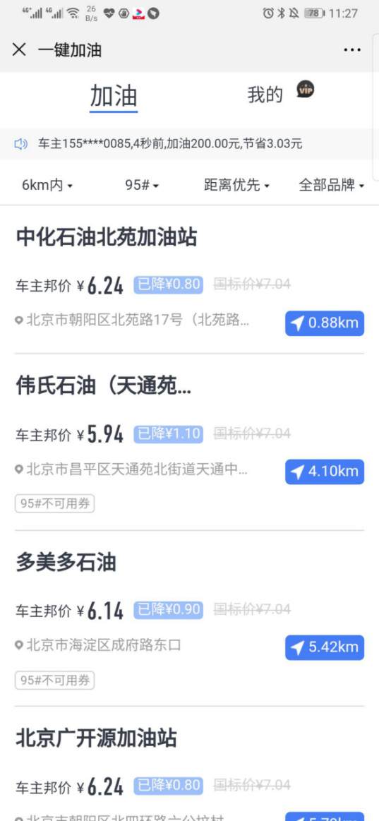 加油流程簡單,在指定加油站,提槍加油,通過“惠加油”獲得優惠結算,優惠幅度以列示為準。