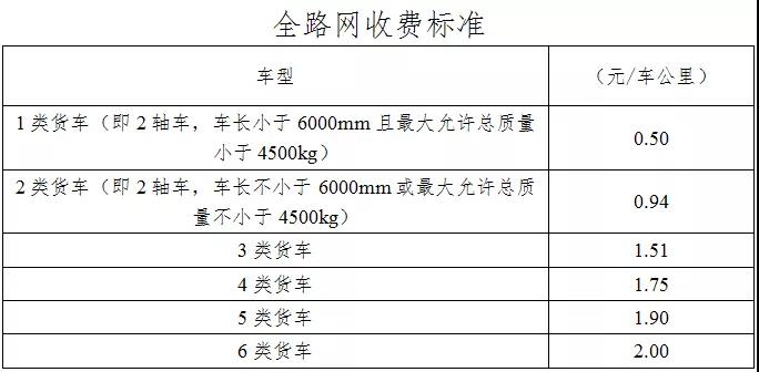 1、收費(fèi)費(fèi)率。一類貨車按車(軸)型收費(fèi)標(biāo)準(zhǔn)調(diào)整為基本費(fèi)率0.40元/車公里+橋隧通行費(fèi)4.00元或8.00元/車次;貨車計(jì)重收費(fèi)綜合費(fèi)率0.12元/噸公里的高速公路項(xiàng)目,一類貨車按車(軸)型收費(fèi)標(biāo)準(zhǔn)調(diào)整為綜合費(fèi)率0.60元/車公里。