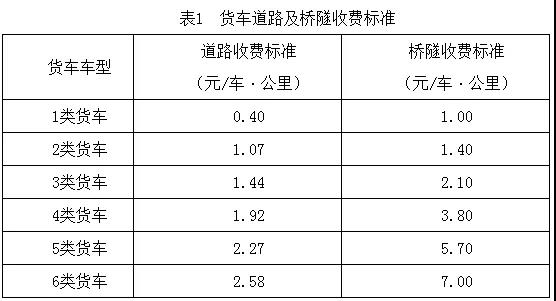 1、貨車道路及橋隧收費(fèi)標(biāo)準(zhǔn)