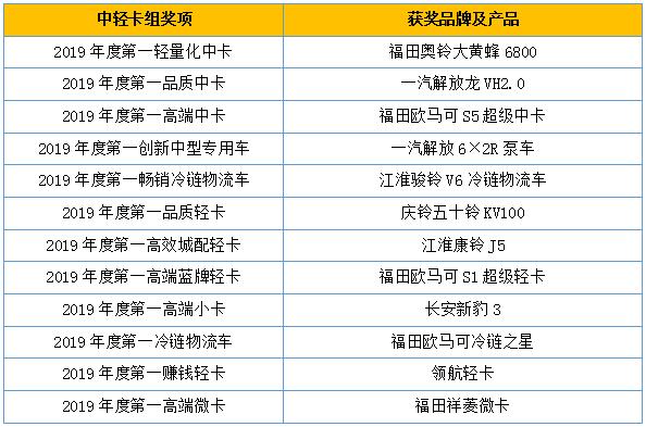 中輕卡組獲獎品牌及產(chǎn)品