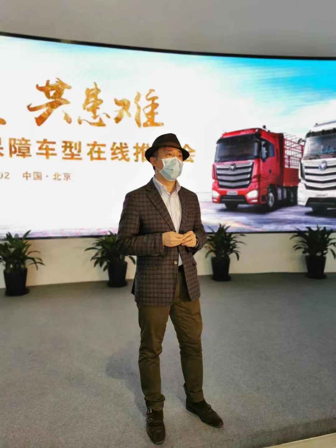 【福田汽車集團品牌副總裁、福田戴姆勒汽車品牌總監(jiān)李健講解歐曼重卡民生保障車型訂車優(yōu)惠政策】