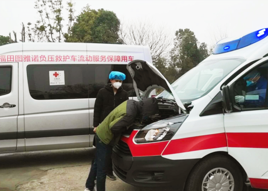 肩負社會責任,福田圖雅諾加班加點生產的負壓救護車陸續交付武漢一線保障疫區病患轉運,與此同時,服務人員作為志愿者突擊進駐疫區,為前線負壓救護車高效運轉保駕護航!