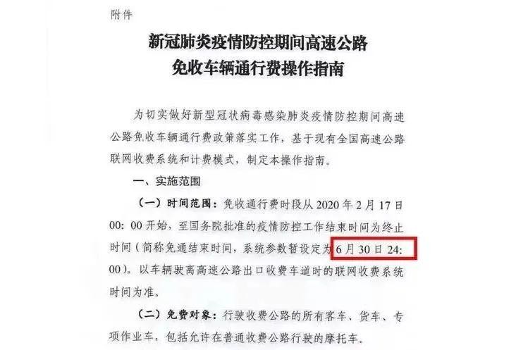 全國收費公路免收車輛通行費