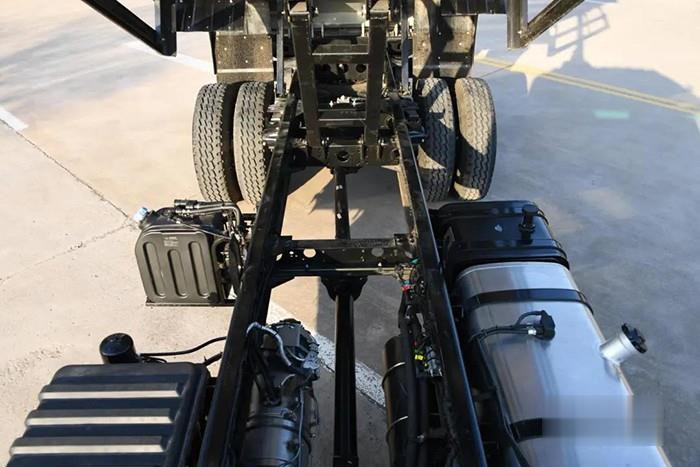 福田瑞沃ES5 6x2三軸工程車采用284雙層主副一體雙層車架457/STR后橋多片簧懸掛結構,運輸效率翻倍提高。