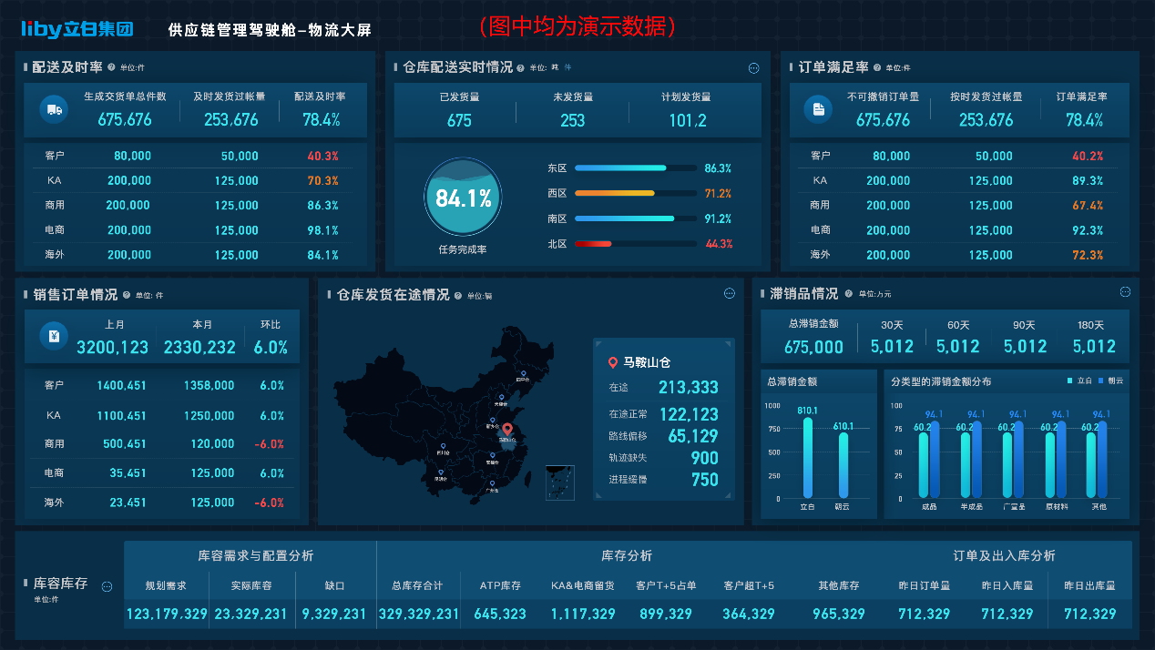 立白供應鏈管理駕駛艙物流大屏示意圖