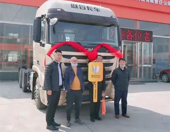 聯合卡車U+牽引車批量交車儀式在河南安陽創世汽貿4S店前隆重舉行。交車客戶為安陽砂石料運輸散戶,其已陸續購買近20臺聯合卡車用于日常運營,可謂是聯合卡車“忠實粉絲”。