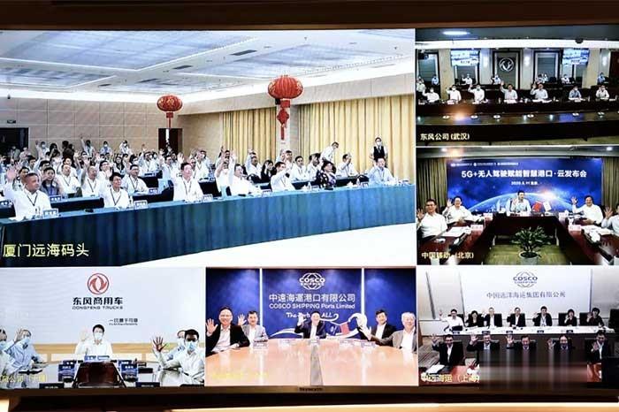 東風汽車集團有限公司(“東風公司”)、中國遠洋海運集團有限公司(“中遠海運”)、中國移動通信集團有限公司(“中國移動”)聯合在北京、上海、武漢、十堰、廈門和香港六個城市通過中國移動5G+云視訊系統舉行“5G+無人駕駛賦能智慧港口”云發布會,見證了港口無人駕駛集裝箱卡車現場運行操作情況。