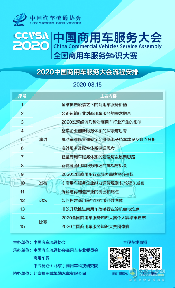 通知:2020中國商用車服務大會將全程直播啦!8月15日約起