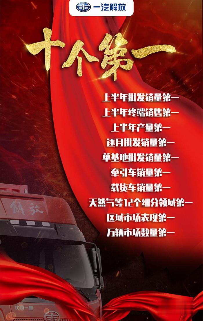 包括:上半年產(chǎn)量、銷量、逐月銷量、單基地銷量都位居行業(yè)第一;同時上半年終端(AAK)銷量、牽引車、載貨車銷量、天然氣等12個細分領(lǐng)域也榮登冠軍寶座;區(qū)域市場表現(xiàn)第一,其中西部和京津冀區(qū)域雙基地超雙萬輛;山東、安徽、山西、河南區(qū)域?qū)崿F(xiàn)整車銷售超萬輛,萬輛市場數(shù)量行業(yè)第一,解放整體表現(xiàn)堪比“國貨之光”!