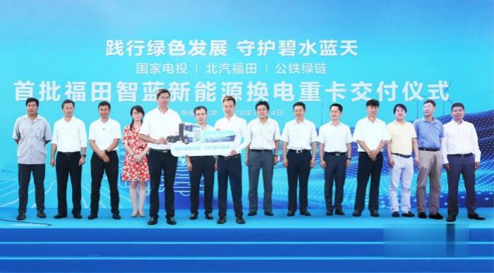 2020年7月24日,以“踐行綠色發展 守護碧水藍天”為主題的國家電力投資集團&北汽福田汽車股份有限公司&北京公鐵綠鏈新能源股份有限公司首批福田智藍新能源換電重卡車輛交付儀式在北京密云舉行。活動現場,北汽福田推出換電重卡產品,并在現場與北京公鐵綠鏈新能源股份有限公司進行20輛換電重卡車輛交付,本次交付不僅開啟了中國首個換電重卡商業化場景應用,同時標志著北汽福田在新能源科技創新方面踐行“福田主張”的又一落地。