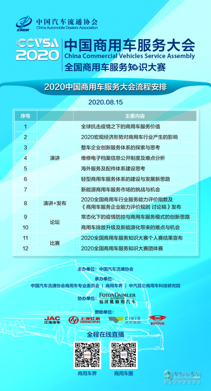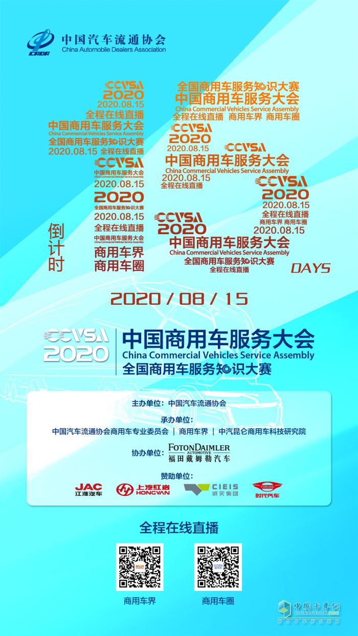 2020中國商用車服務大會倒計時15天,中國汽車流通協會邀您云觀賞大會精彩演講和論壇, 觀摩6大戰隊首次全國商用車服務知識大賽!