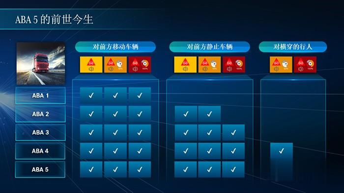 奔馳卡車從2006年開始推出第一代主動制動輔助系統,從只能識別前方移動車輛發展到可以識別靜止車輛并采取緊急制動。從ABA 4開始可以識別橫穿馬路的行人,并采取部分制動。