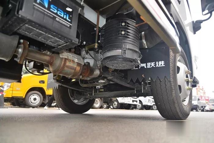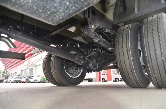 實(shí)拍車型搭載1.2T級(jí)前橋,允許載荷達(dá)到1450kg;后橋則為2.7T級(jí),速比為4.375,載荷達(dá)到2675kg,整體保證了車輛承載能力,以及不錯(cuò)的動(dòng)力輸出。