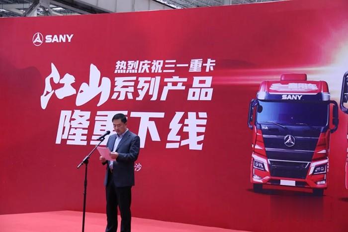 2020年11月3日,三一重卡江山系列產品下線儀式在長沙三一重卡超級工廠隆重舉行,伴隨著江山版從生產線上緩緩駛出,三一重卡首款中高端旗艦重卡正式下線。三一重卡董事長梁林河、三一重卡總經理張紅松、三一重卡副總經理蔣建軍等公司領導出席下線儀式。