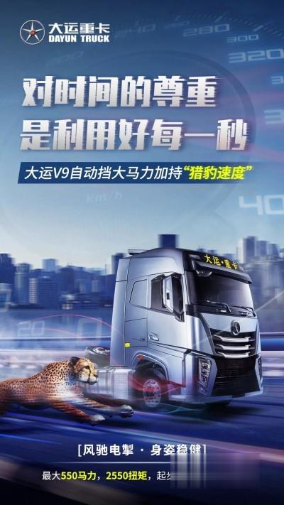 跑得快賺的多,大運V9自動擋重卡,風馳電擎,身姿穩健如同獵豹奔襲,步伐不亂。