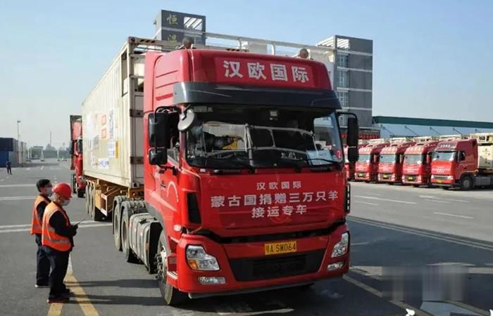 “蒙古國捐贈三萬只羊接運專車”