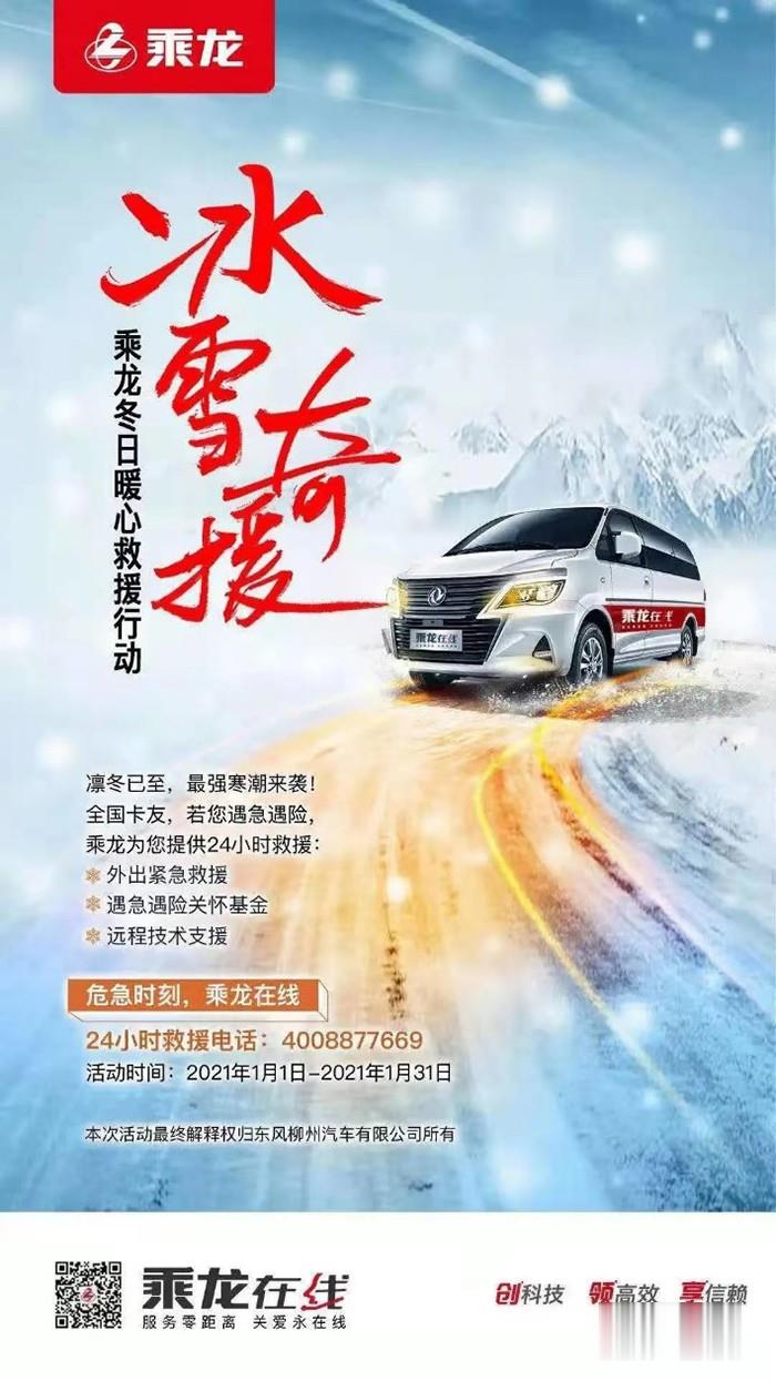 另外,自入冬以來(lái),暴雪肆虐,疫情擴(kuò)散,為人們的安全出行以及正常的工作和生活帶來(lái)了諸多不便。在此關(guān)鍵時(shí)刻,東風(fēng)柳汽乘龍身先士卒,于1月1日起,在全國(guó)范圍內(nèi)開(kāi)展了乘龍冬日暖心救援活動(dòng),為用戶的安全出行提供保障。