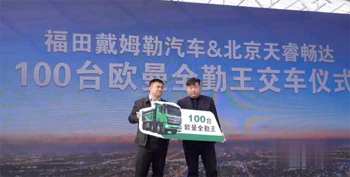 2021年2月27日,牛年開工之初,福田戴姆勒汽車就干了一件牛事--交付北京天睿暢達100臺歐曼全勤王渣土車,并且再與其完成500臺簽約儀式!總共600臺的大單,歐曼全勤王渣土車到底靠什么引得了北京天睿暢達“豪氣”出手,簽下這張“牛單”?
