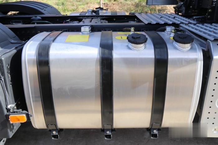 為了最大限度的給油箱騰出空間,其他的底盤部件大量集中于車輛的尾部和內側。最大限度的利用了車輛空間。在金屬擋板后方搭載了專用的尿素罐。上面標明了所需的尿素濃度以及其他的注意事項,便于駕駛員及時檢查合理添加尿素。