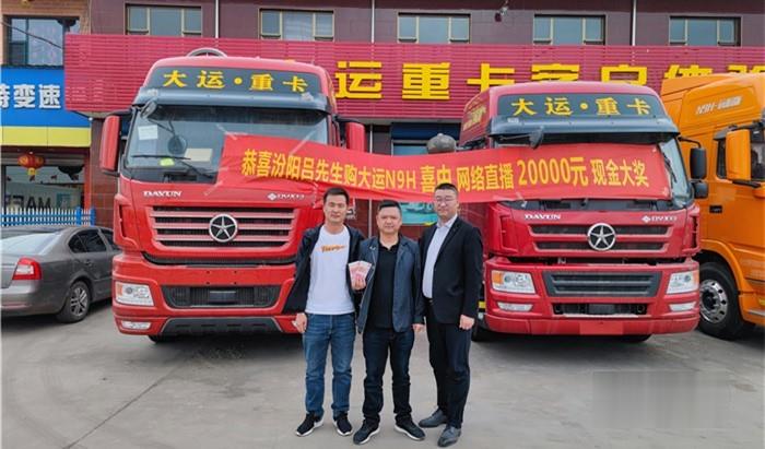 同時在今年的2021年4月份,大運公司在官方抖音、快手、微信視頻號開展線上直播抽獎活動,凡是4月1日至4月17日購買大運燃氣牽引車的用戶均有中獎機會,呂老板喜獲“錦鯉”抽中一等獎——兩萬元現金大獎,雖是意外之喜,但也是大運精誠服務用戶的很好體現,難怪鐵粉多多。