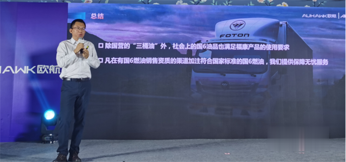 福田歐航歐馬可事業部營銷公司服務副總經理彭仕順,詳解國六全程無憂服務保障政策