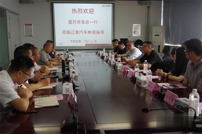2021年6月28日,星巴克攜DHL快遞、衛崗乳業、鮮生活等企業代表蒞臨江淮汽車參觀考察,開啟價值品鑒之旅。安徽江淮汽車集團股份有限公司副總經濟師、輕型商用車營銷公司總經理張先華陪同參觀考察,各方就鞏固和深化在物流運輸、冷鏈物流等領域合作的基礎上,進一步探索互利共贏的深度合作模式,助力“碳達峰”“碳中和”等進行了深入交流,并達成了合作意向。