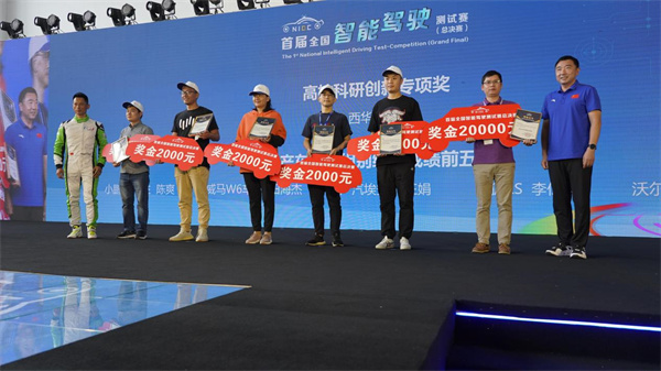 經(jīng)過三天的激烈角逐,49支參加補(bǔ)位賽和總決賽的隊(duì)伍進(jìn)行了11個(gè)測試項(xiàng)目的比拼。經(jīng)過專家評審和裁判組打分,展會(huì)組委會(huì)對獲得首屆全國智能駕駛測試賽(總決賽)優(yōu)勝獎(jiǎng)的企業(yè)和車主用戶頒發(fā)獎(jiǎng)金和榮譽(yù)證書。他們是(排名不分先后):量產(chǎn)乘用車優(yōu)秀智能駕駛技術(shù)應(yīng)用獎(jiǎng):哪吒汽車、東風(fēng)日產(chǎn)、合創(chuàng)汽車,商用車智能駕駛年度車型獎(jiǎng):陜西重型汽車有限公司 X6000重卡、一汽解放汽車有限公司 J7重卡、北汽福田汽車股份有限公司歐馬可M4輕卡,未來出行創(chuàng)新應(yīng)用獎(jiǎng):一汽(南京)科技開發(fā)有限公司、矩陣數(shù)據(jù)科技(上海)有限公司、新石器慧通(北京)科技有限公司、西華大學(xué),商用車智能駕駛技術(shù)創(chuàng)新獎(jiǎng):蘇州智加科技有限公司、南京世博電控技術(shù)有限公司,智能駕駛安全可靠獎(jiǎng):蘑菇車聯(lián)信息科技有限公司,以及5位(前五強(qiáng))個(gè)人車主用戶:小鵬、威馬、廣汽埃安、極狐、沃爾沃品牌車主。為鼓勵(lì)科研機(jī)構(gòu)和高等院校在研發(fā)方面加大投入,培養(yǎng)智能網(wǎng)聯(lián)汽車專業(yè)優(yōu)秀人才,首屆全國智能駕駛測試賽組委會(huì)特別設(shè)立了高校組科研創(chuàng)新專項(xiàng)獎(jiǎng)金。今年獲得該項(xiàng)獎(jiǎng)金的院校是:西華大學(xué)。