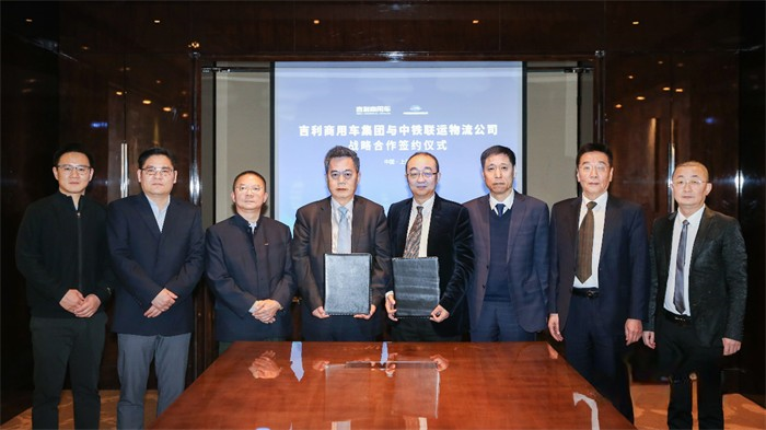 吉利商用車集團(tuán)首席科學(xué)家劉漢如與中鐵聯(lián)運(yùn)物流股份有限公司總經(jīng)理李峰代表雙方簽署戰(zhàn)略合作協(xié)議