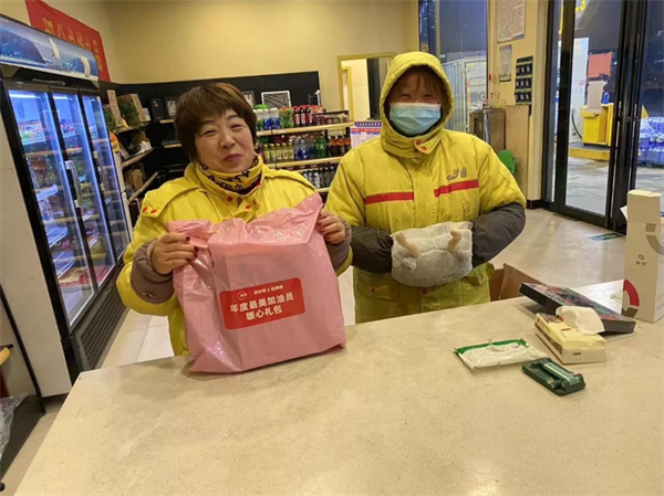 不久前,滿幫集團的工作人員向山東高速某服務區的兩位加油員送去了一份暖心禮包和精美禮品,祝賀她們當選“2021年度最美加油員”,感謝她們一年來為平臺卡車司機提供的優質服務。兩位加油員表示,“沒想到給司機加油還能受表彰,由衷的感到自豪和高興,希望卡車師傅們都能平安運輸,平安到家。”