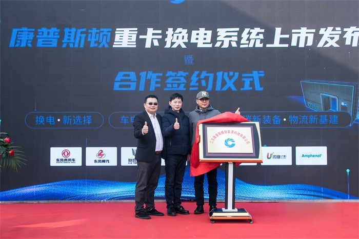 2022年1月17日,康普斯頓重卡換電系統上市發布暨簽約合作儀式于江蘇淮安隆重舉行,淮安經濟技術開發區管委會相關領導,中集、東風商用車、東風柳汽等行業生態伙伴,北部灣港、廣西優鏈等合作用戶,行業媒體出席本次活動!活動現場,康普斯頓新能源科技公司正式揭牌成立!康普斯頓首套重卡換電系統上市發布!重卡換電站、換電重卡訂購協議簽約!