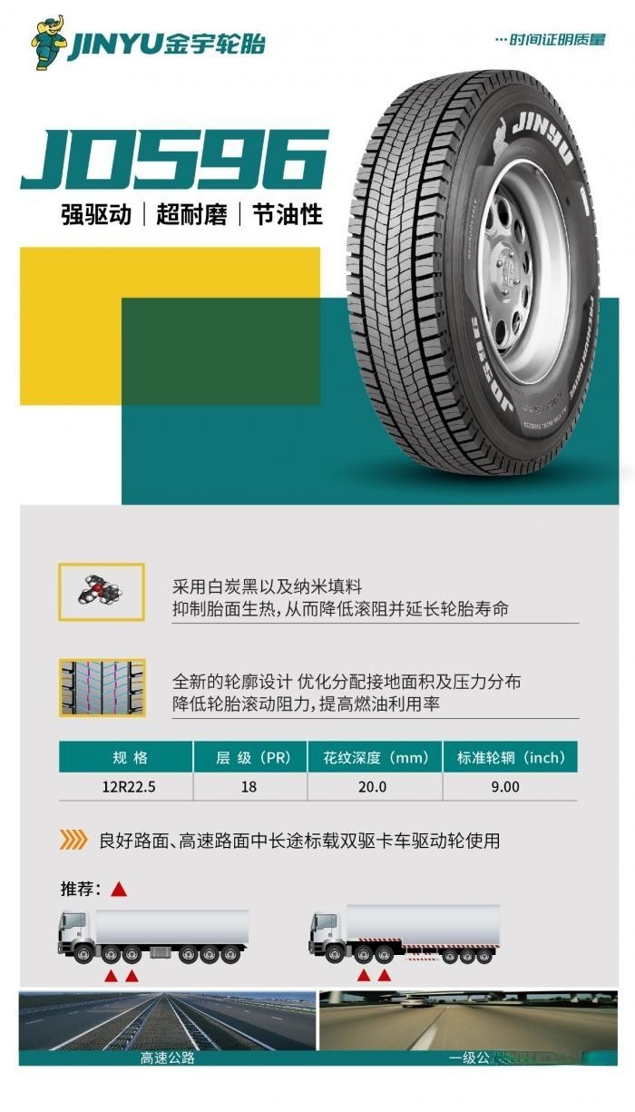 近些年來,青睞節油輪胎的用戶越來越多,據世界可持續發展工商理事會預計,到2030年,汽車排放的二氧化碳排放量將翻一番。在這種情況下,節油輪胎就成為選擇輪胎的首選。金宇JD596節油型輪胎節油性能出色,外加超長里程表現,在用戶口碑的加持下,未來的市場競爭中,必將會越來越凸顯自身價值。