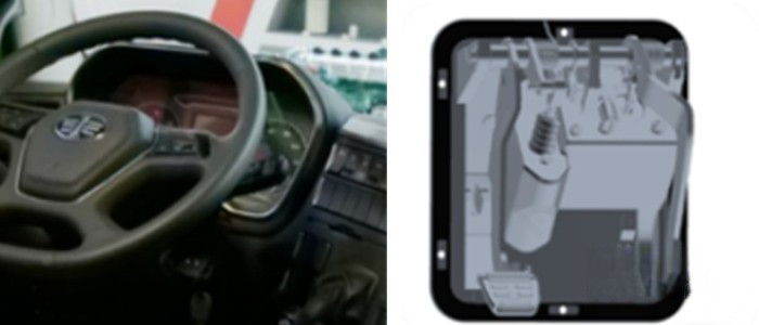 油門、制動、離合踏板:2022款進一步優化了踏板操縱性能,踏板力降低至乘用車水平,三個踏板的位置更符合卡友習慣,有效減少駕駛疲勞感。