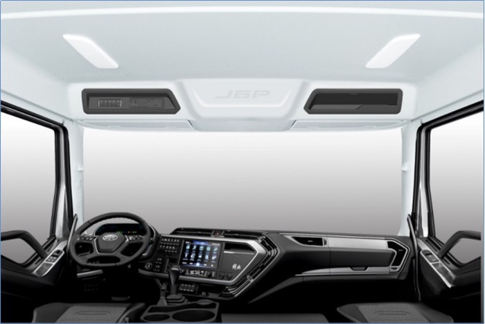內部空間優化:頂部一體式高架箱設計,增加頭部空間和前排的通過性;內飾護板造型更加貼近車身,為卡友提供更大的駕乘居住和儲物空間。